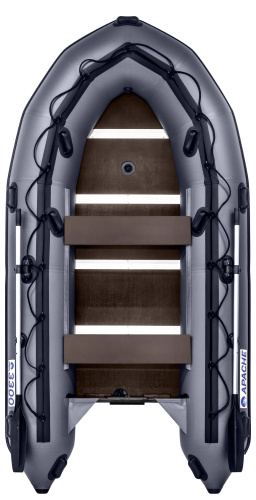 Данная модель была разработана по просьбам рыбаков и любителей отдыха на воде, которые хотели иметь длину лодки 3.3 метра, 3.5 метра, 3.7 метра. Также в данной лодке увеличен диаметр баллона до 48см что делает эту лодку по этому показателю одной из лучших в своем классе. Также данная модель имеет увеличенное кол-во ручек как для переноски так и для держания внутри кокпита при передвижении на скорости. Транец данной модели имеет дополнительное укрепление. Ну и нельзя не отметить форму носа, многие считают, что именно такая форма носа лучше рассекает волну и более управляемая.