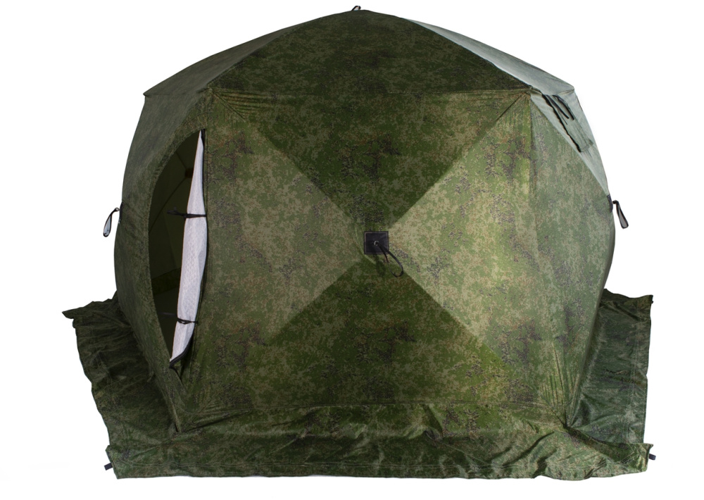 Модель имеет стеклопластиковый каркас с добавлением карбона и синтетический не продуваемый тент (оксфорд 240PU). Внутренняя подкладка выполнена из термостойкой ткани, стеганного полотна и синтепона. Дополнительная прослойка пространства позволяет создавать воздушную подушку для длительного сохранения тепла внутри.