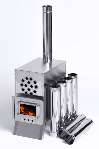 Данная конструкция теплообменника имеет компактные размеры, позволяет разогреть и приготовить пищу, в несколько раз экономить топливо и значительно увеличивает эффективность обогрева, по сравнению с обычной походной печкой.