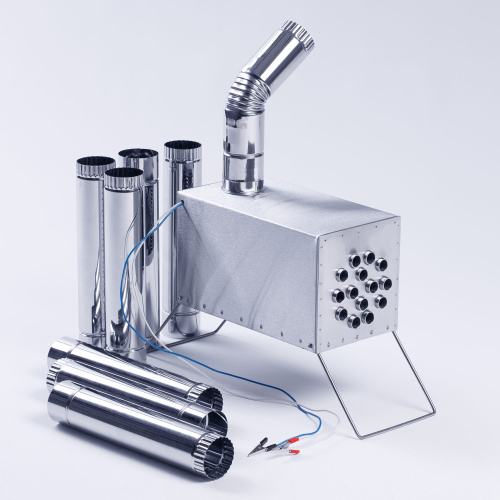 Все теплообменники комплектуются составными сегментами вытяжной трубы диаметром 65 мм в кол-ве 7 шт., что в сборе обеспечивает высоту вытяжной трубы 2,3 метра, угловым сегментом 45 градусов, сумкой для переноски и хранения, инструкцией по эксплуатации. Упаковка – гофроящик.